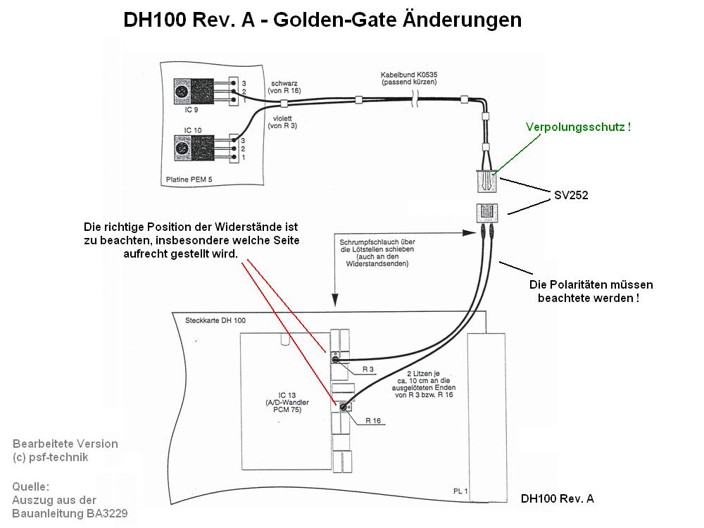 der Platine DH100 werde die Widerstände R3 und R16 einseitig